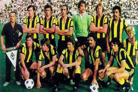 PEÑAROL 1965 Parados: Omar Caetano, Ladislao Mazurkiewcz, Néstor Goncálves, Luis Varela, Carlos Pérez y Pablo Forlán. Agachados: Ernesto Ledesma, Pedro V. Rocha, Héctor Silva, Miguel Resnik (argentino) y Juan Joya (peruano). |