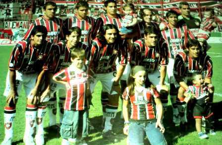 Parados: Leonardo Ramos (uruguayo), Iván Furios, Juan C. Docabo, Jorge Quinteros, Ariel Rosada, Javier Pinola y Mariano Mignini. Agachados: Jorge A. Torales (paraguayo), Eduardo Bustos Montoya, Carlos A. Moreno y Diego Rivero. |