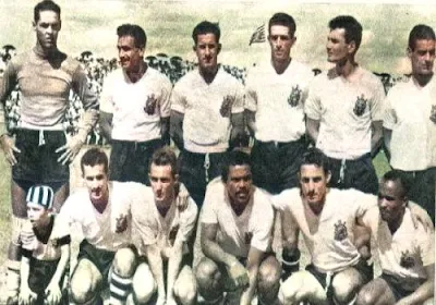 | CORINTHIANS 1953 Parados: Idário, Goiano, Gilmar, Homero, Olavo y Roberto. Agachados: Cláudio, Luizinho, Baltazar, Carbone y Simão. |